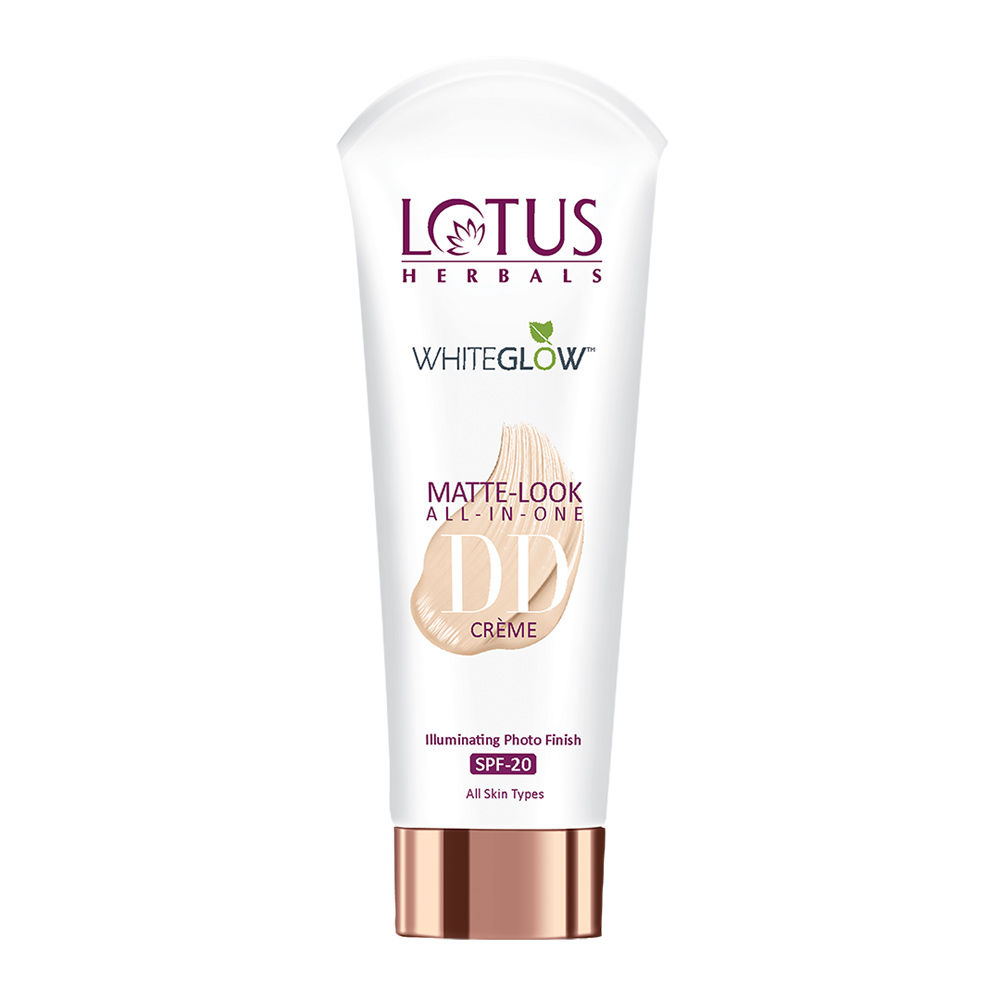 Lotus Herbals WhiteGlow Matte Look All in One DD Crème is a weightless all-in-one formula for your daily routine with SPF 20 which protects skin from everyday environmental pollution and sun damage to give a naturally illuminated, mattifying glow all day long.
